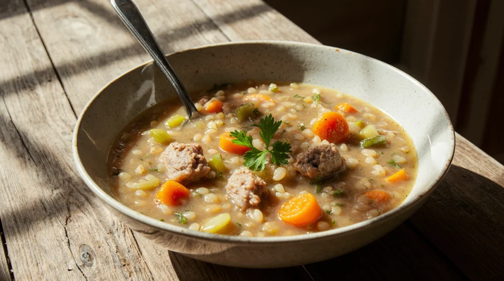 There are soups that taste good, and then there are soups that feel like a hug. This hearty barley turkey soup belongs in that second category. It’s thick, warm, and full of simple ingredients that work well together. Every spoonful brings soft barley, tender turkey, and vegetables that melt right into the broth.